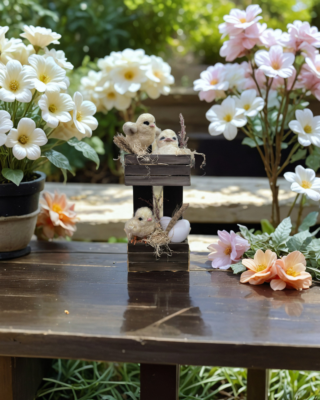 Needle felted Baby Chicks in wood crates