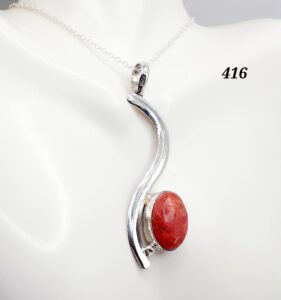 Berry Red Coral Stone Sterling Silver Setting Pendant Necklace