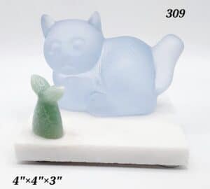 Blue Glass Cat w/Green Aventurine Stone Fish Tail On White Stone