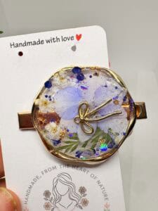 Blue real flower hair pin
