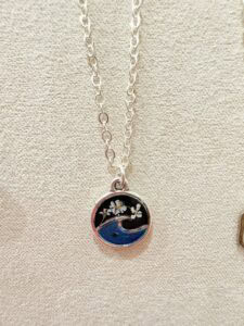 925 sterling silver plated chain, stainless steel blue wave round pendant with queen anne flowers