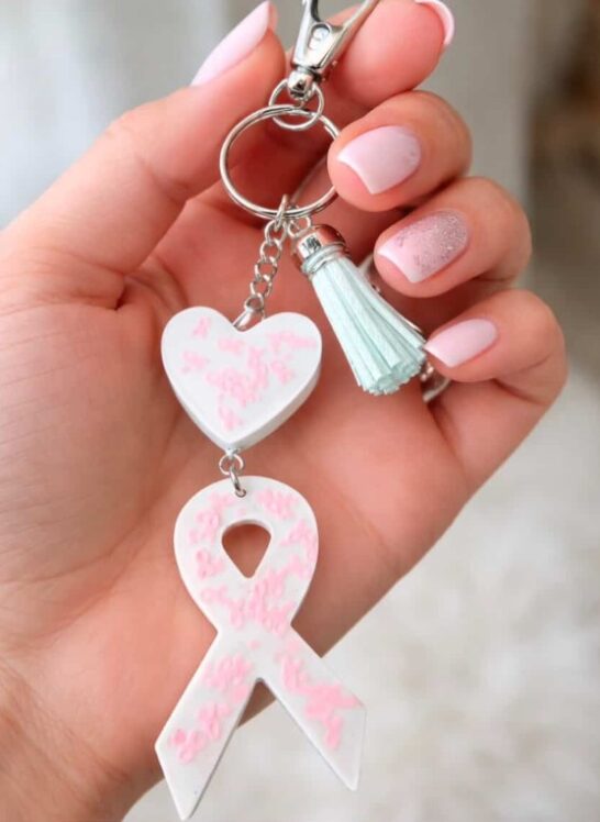 Perfect for keys, bags, or as a heartfelt gift Why You’ll Love It: • Lightweight & durable • Elegant heart + ribbon design • A daily reminder of strength and support