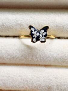Stainless steel  real flowers ring, butterfly black , adjustable