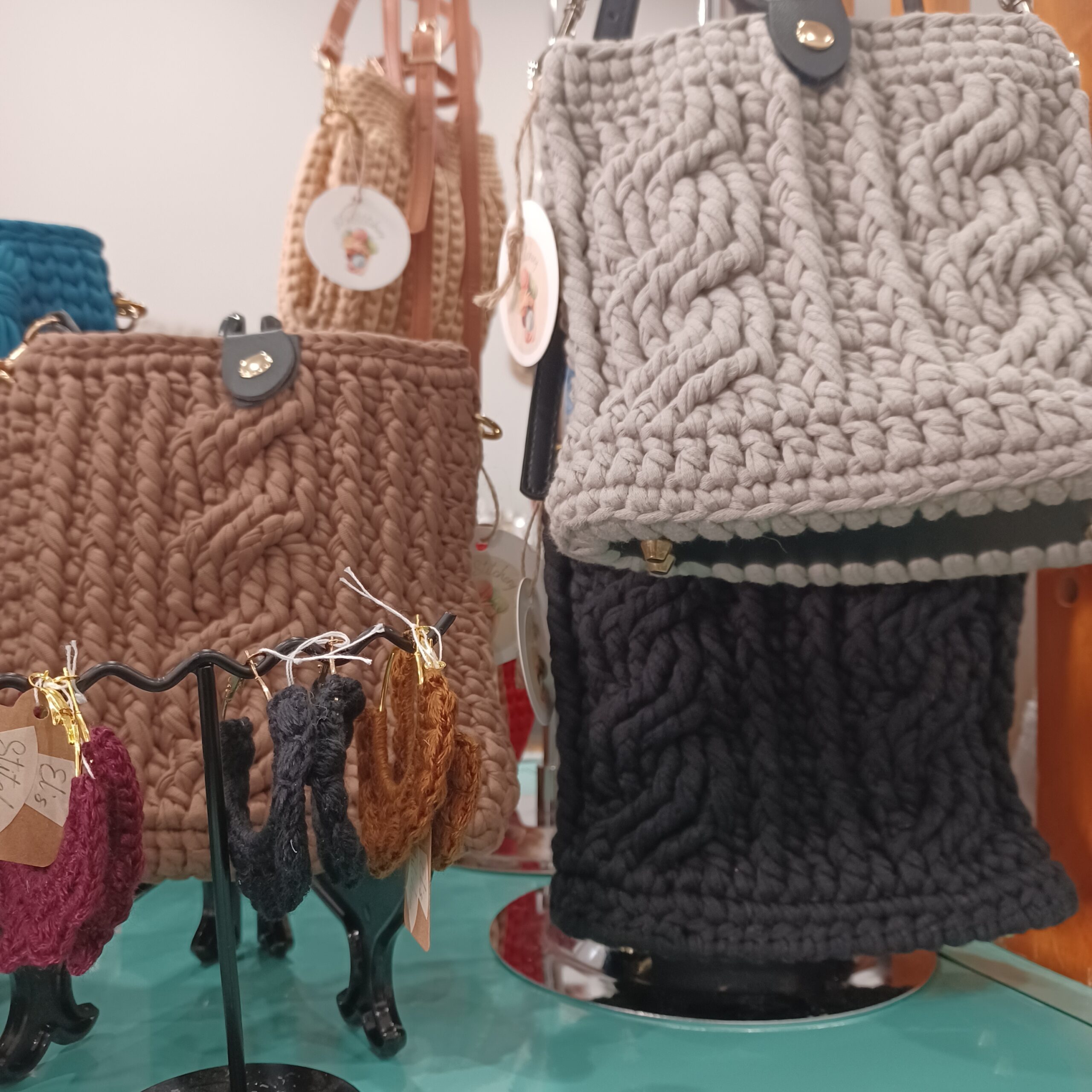 Crossbody bag crocheted from sturdy ribbon yarn.