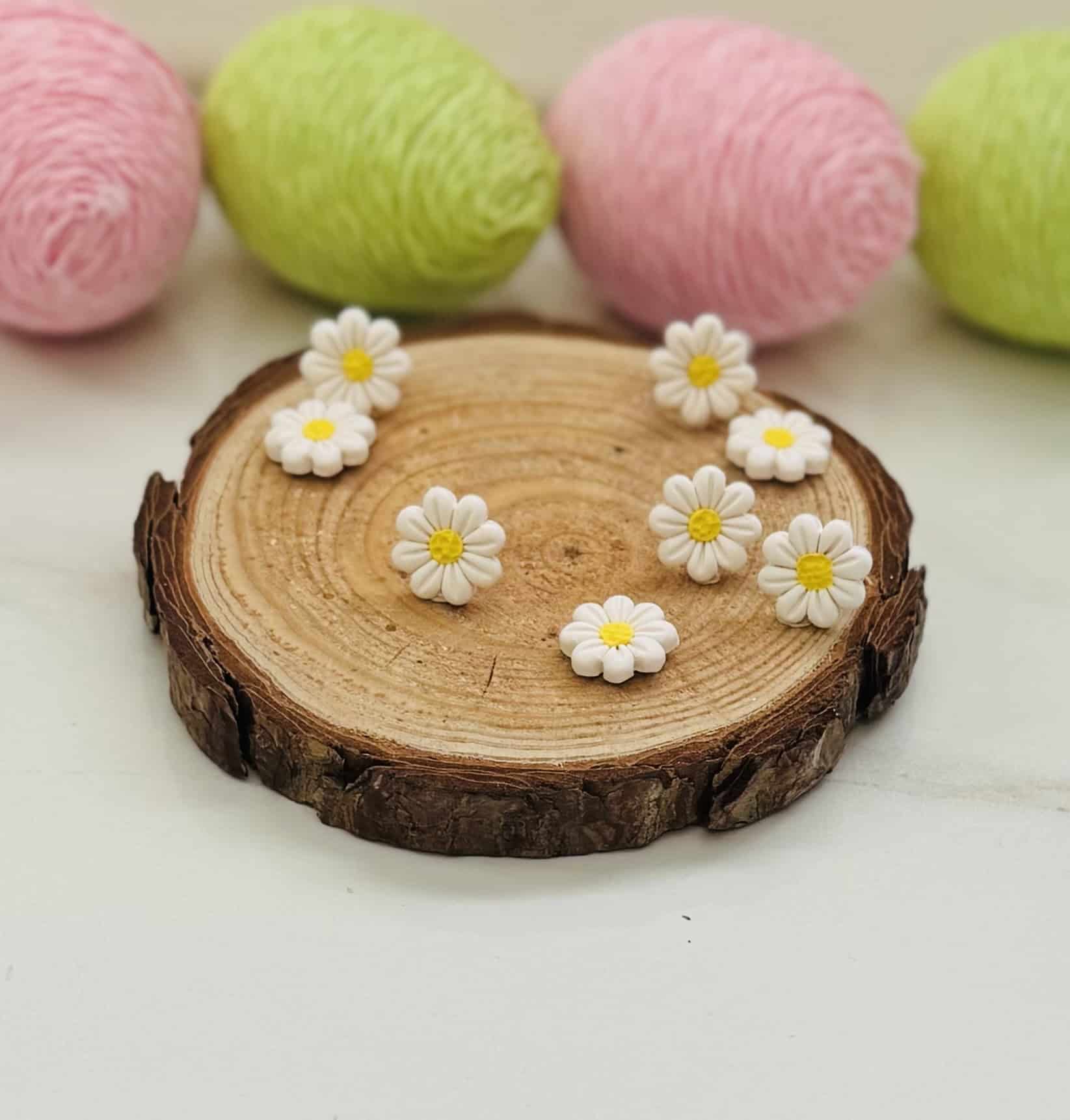 Handmade Polymer clay daisy studs with Hypoallergenic stainless steel post