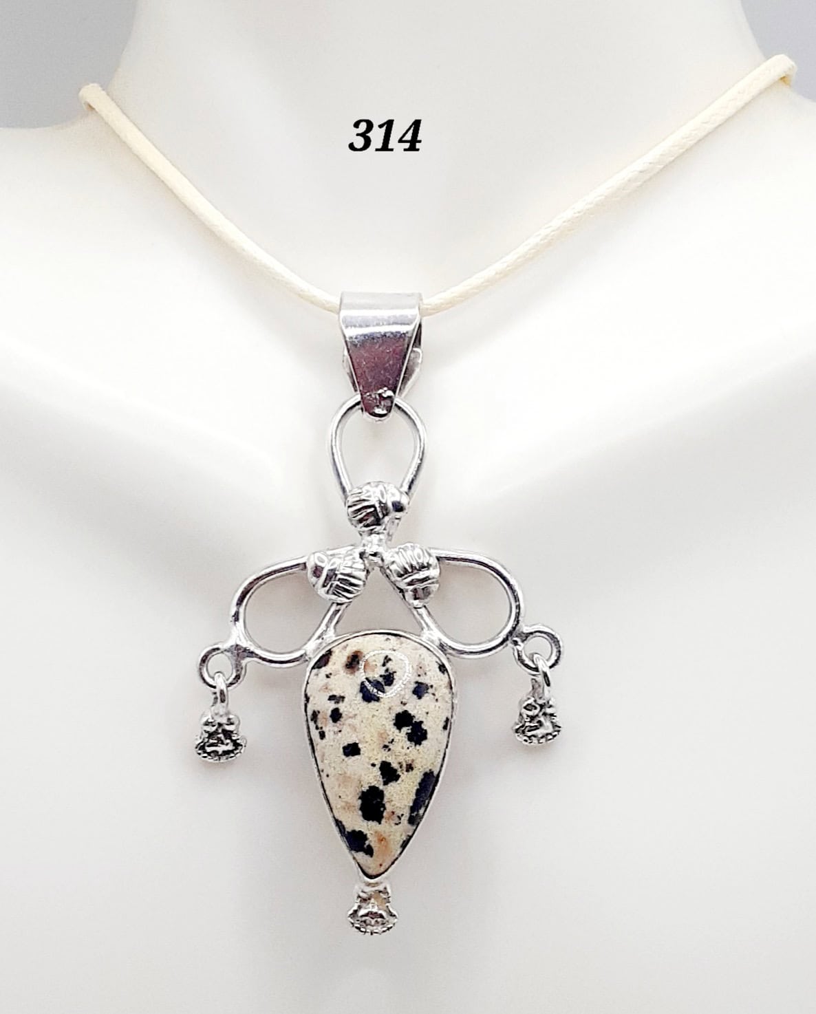 Dalmatian Jasper Stone Sterling Silver Setting Pendant Necklace