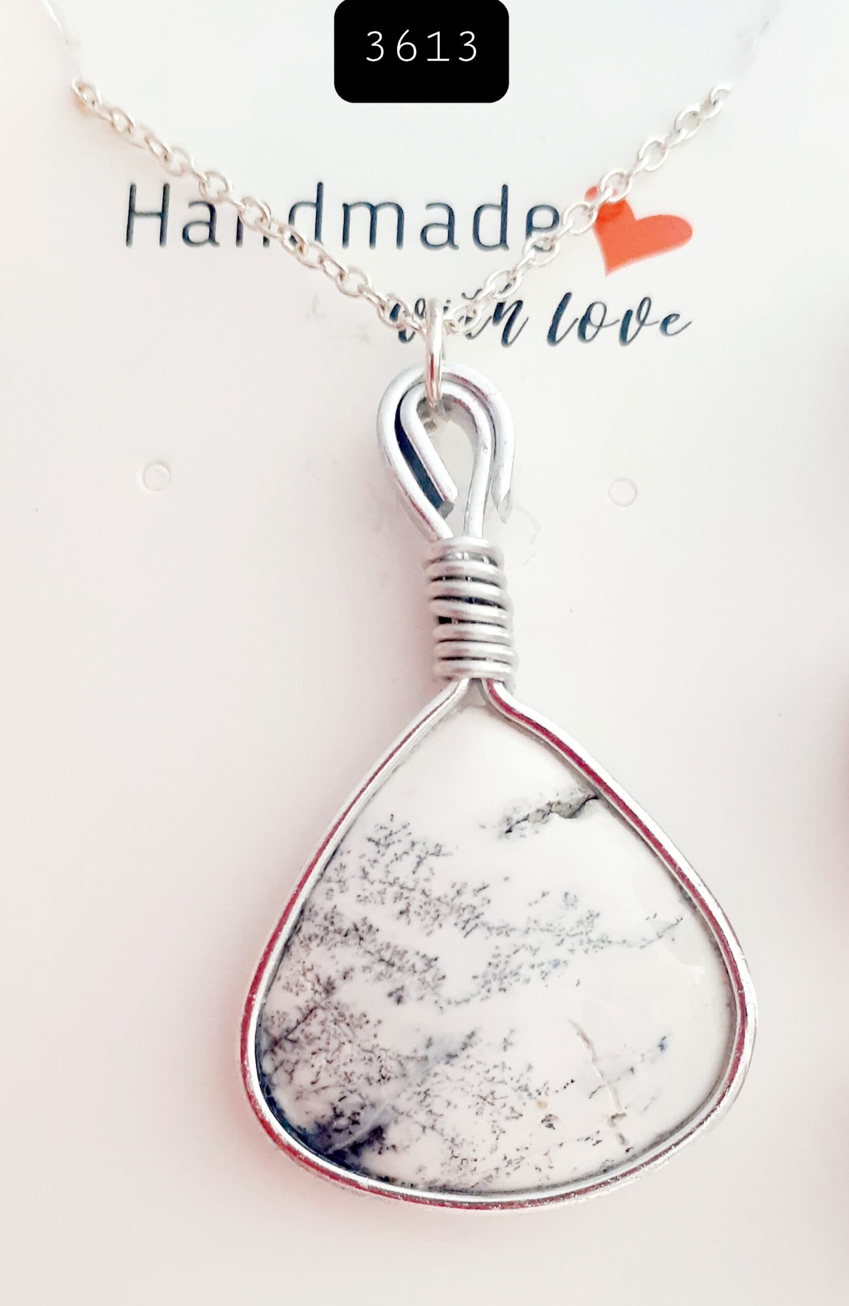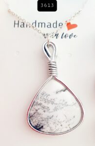 Dendritic White Jasper Stone Pendant Necklace