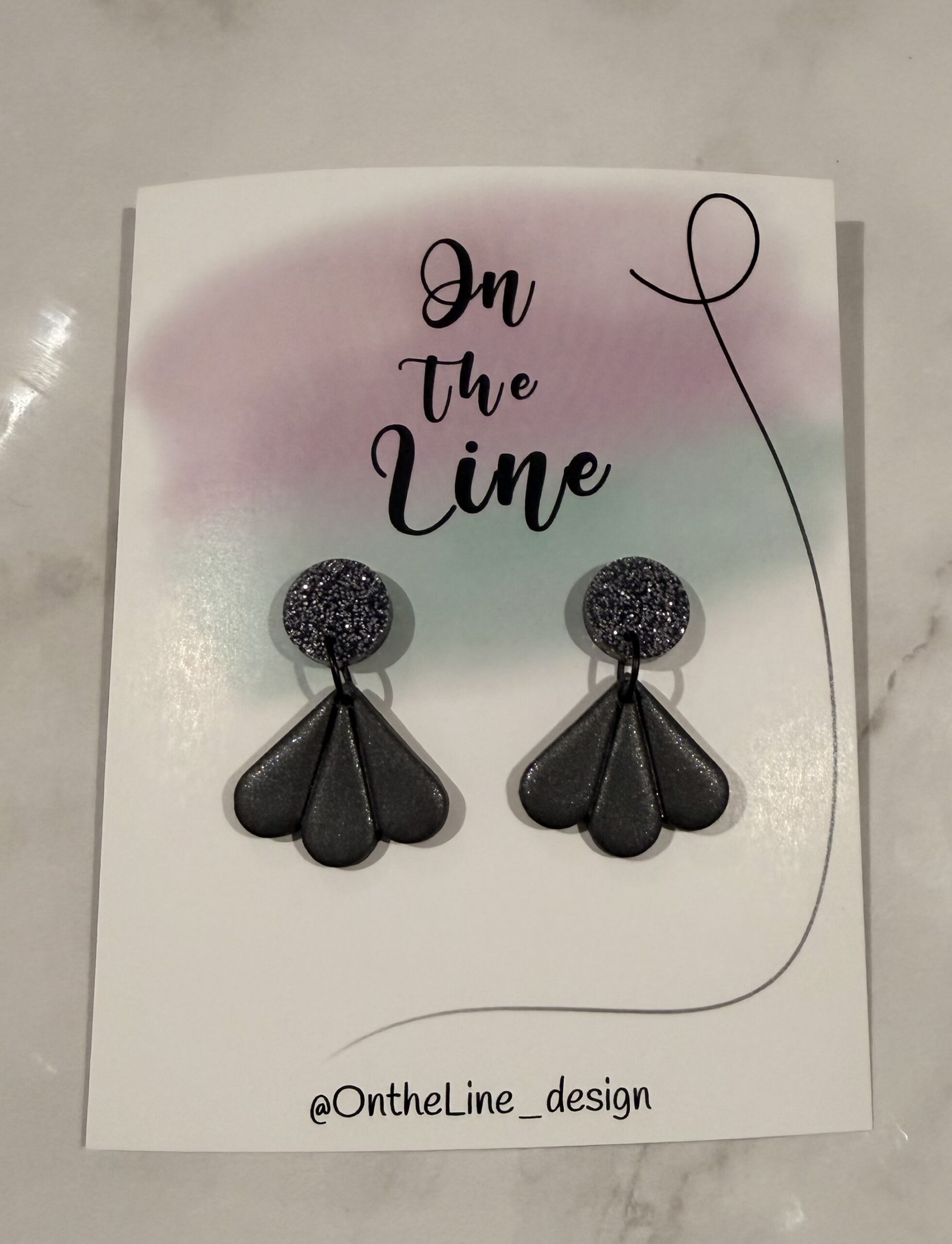The medium large “Detailed Fan Drop” in black with black stud tops.