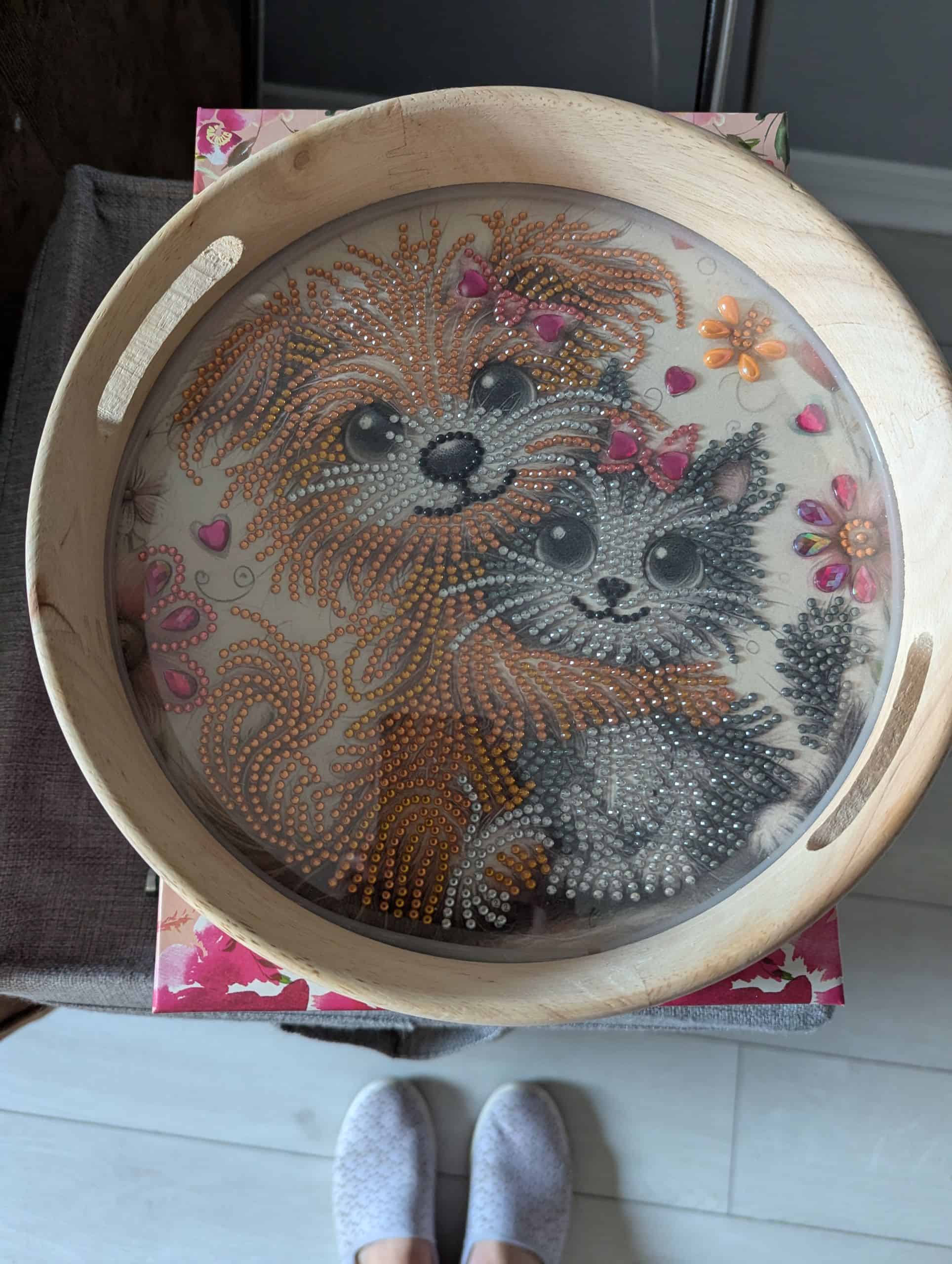 Dog and Cat Round Wood Tray – Diamond Dots
