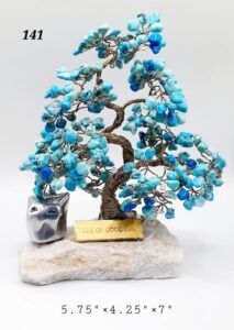 Dyed Turquoise Howlite Stone Tree Of Knowledge w/Owl