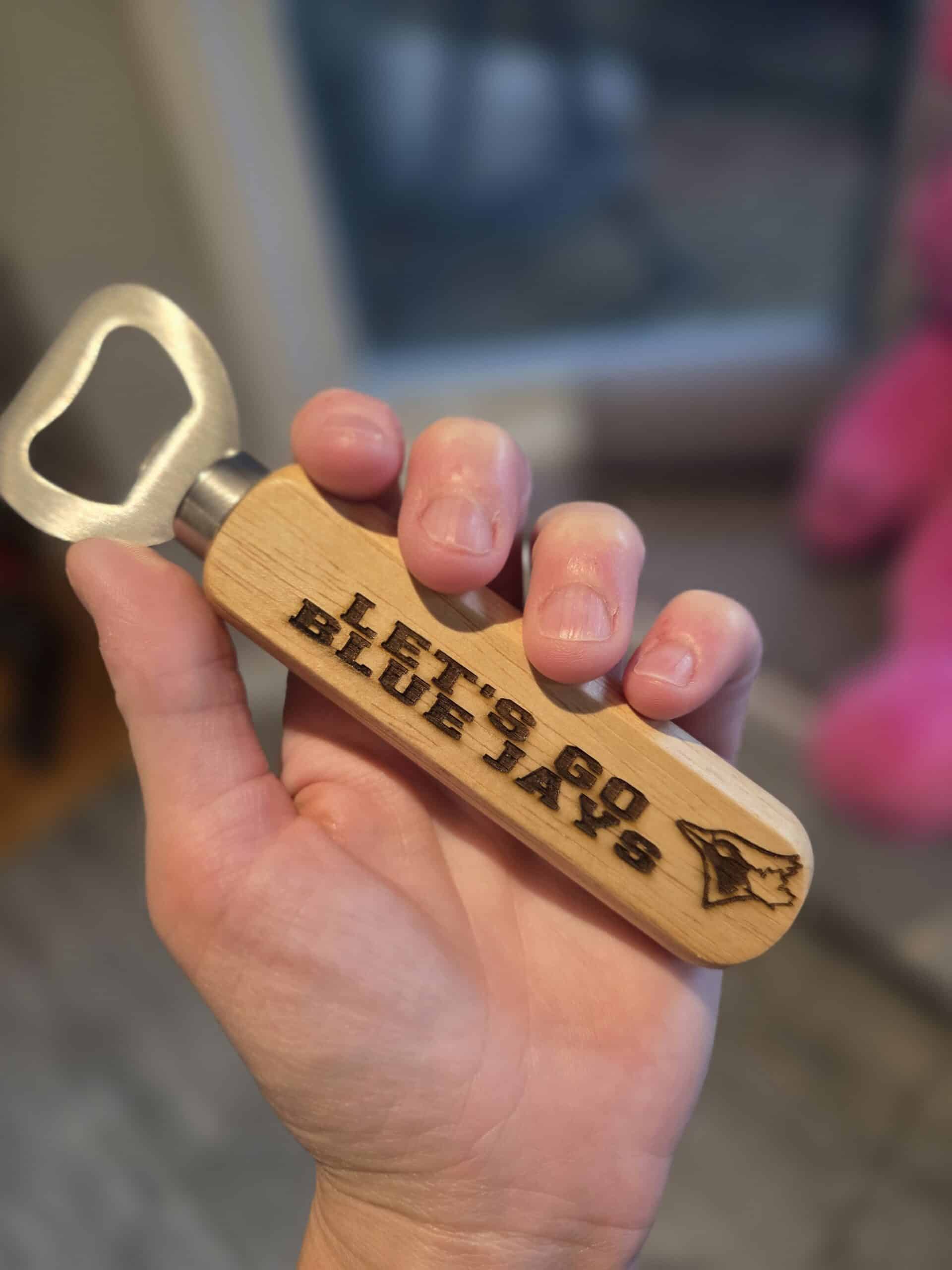 Laser engraved wooden bottle opener