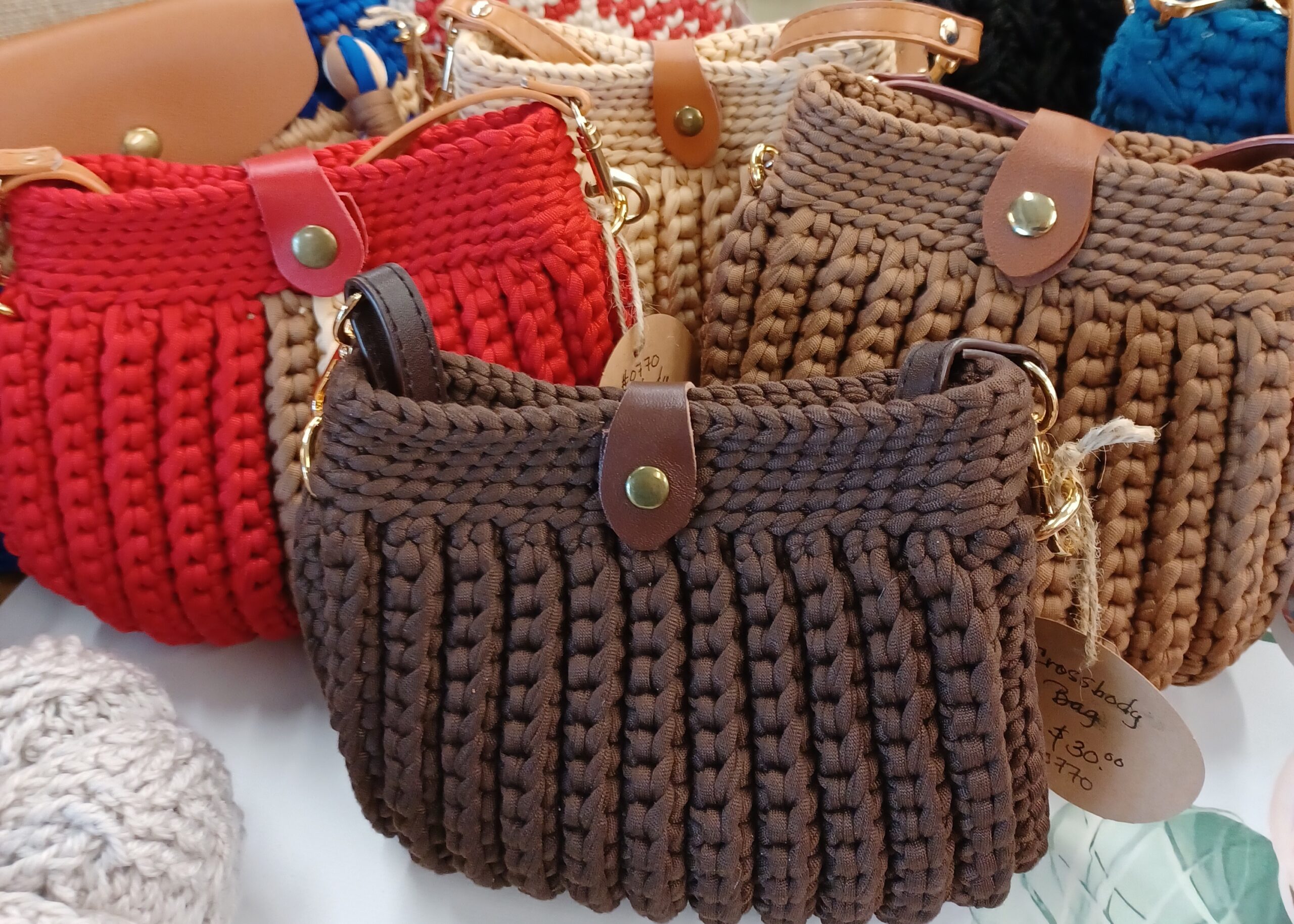 Available in a variety of colours, complete with shoulder strap and snap closure.
