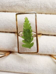 Stainless steel  real fern leaves ring, rectangular , adjustable