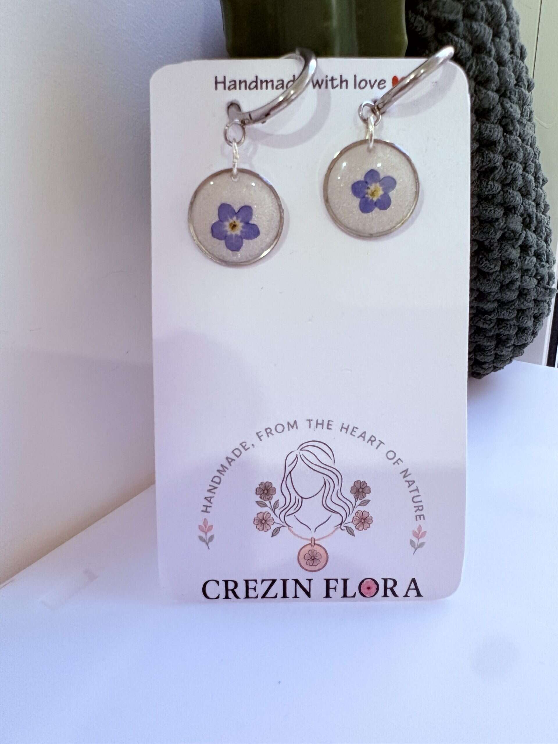 Real pressed forget me not flowers dual, round ring stainless steel ,daily wear