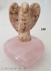 Fossilized Stone Angel On Rose Quartz Crystal Heart