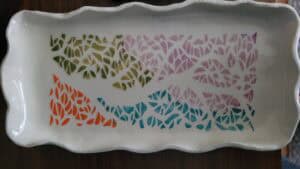 Geometric pattern dish with ruffled edge