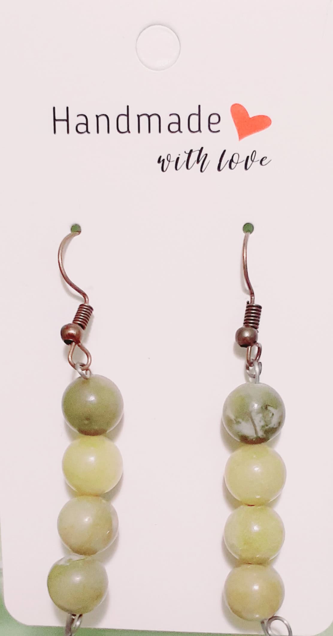 Green Jade Beaded Hook Earrings.