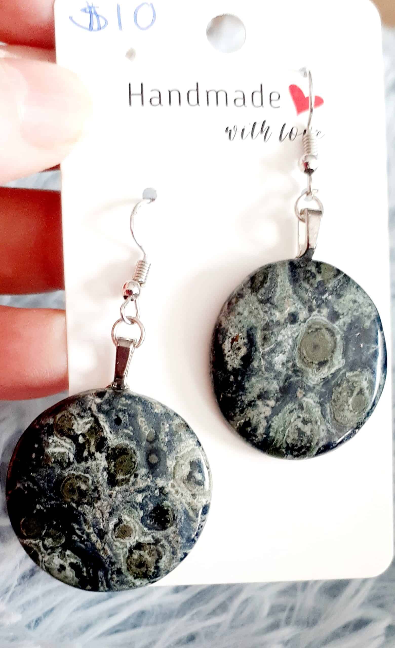 Kambaba Jasper Stone Hook Earrings
