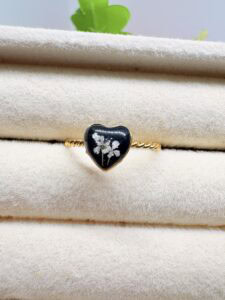 Stainless steel real flowers ring, heart shaped black , adjustable