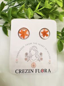 Round Stainless steel, orange real flowers present studs, orange sandalwood