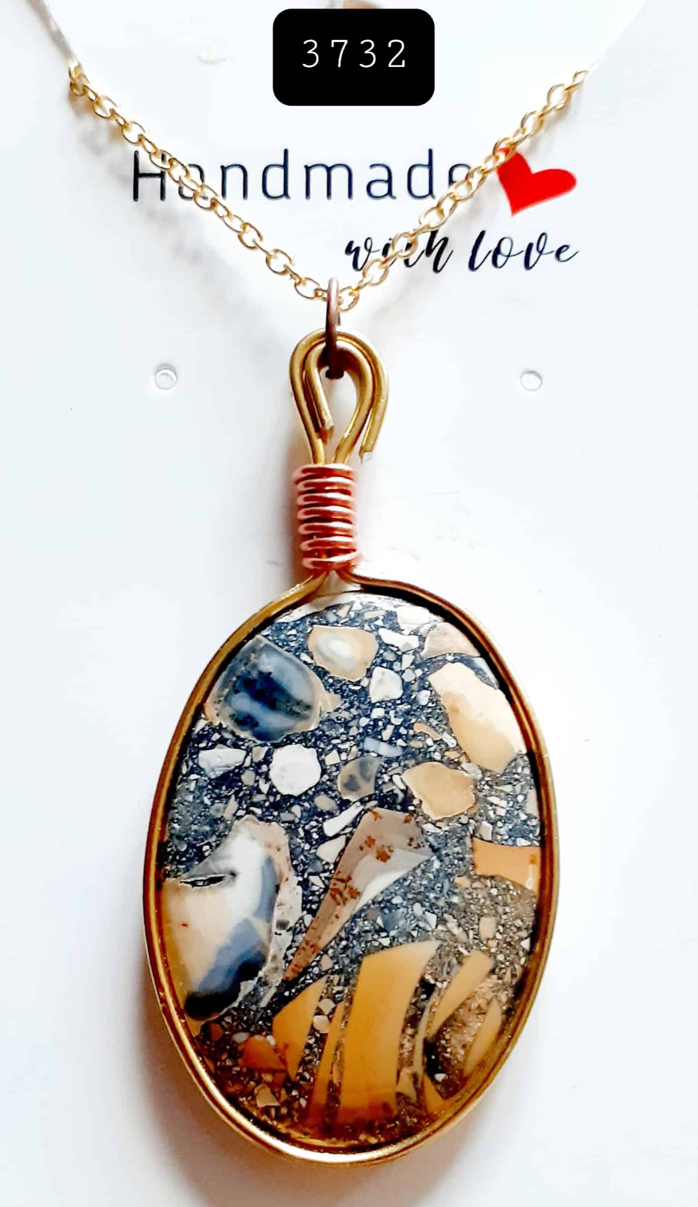 Oval Maligano Jasper Stone Gold Modern Edge Pendant Necklace