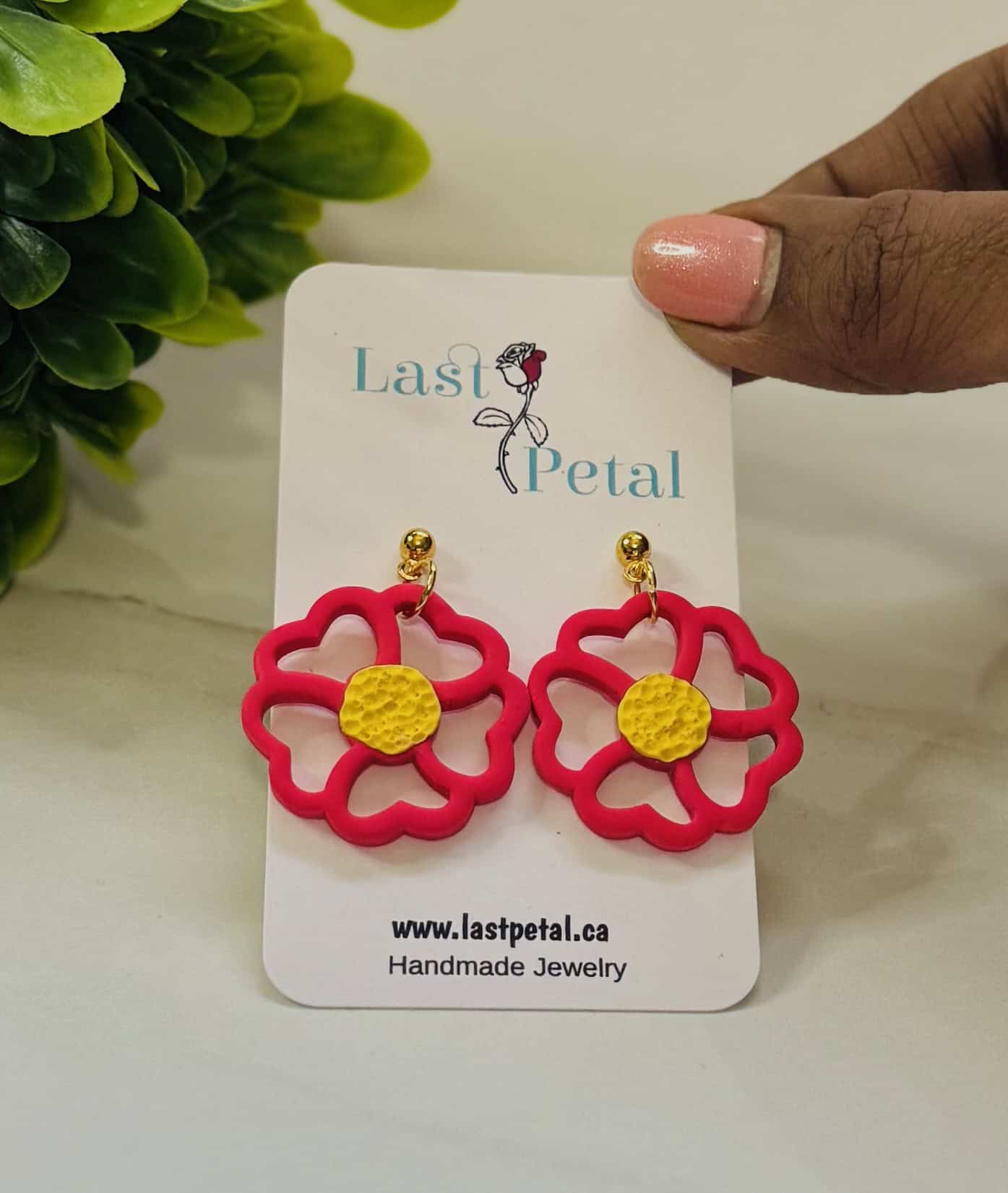 pink bezel flower dangles