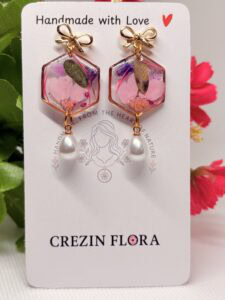 Pink dailsy flower ,multi coloured flower pressed earrings, faux fur pearl