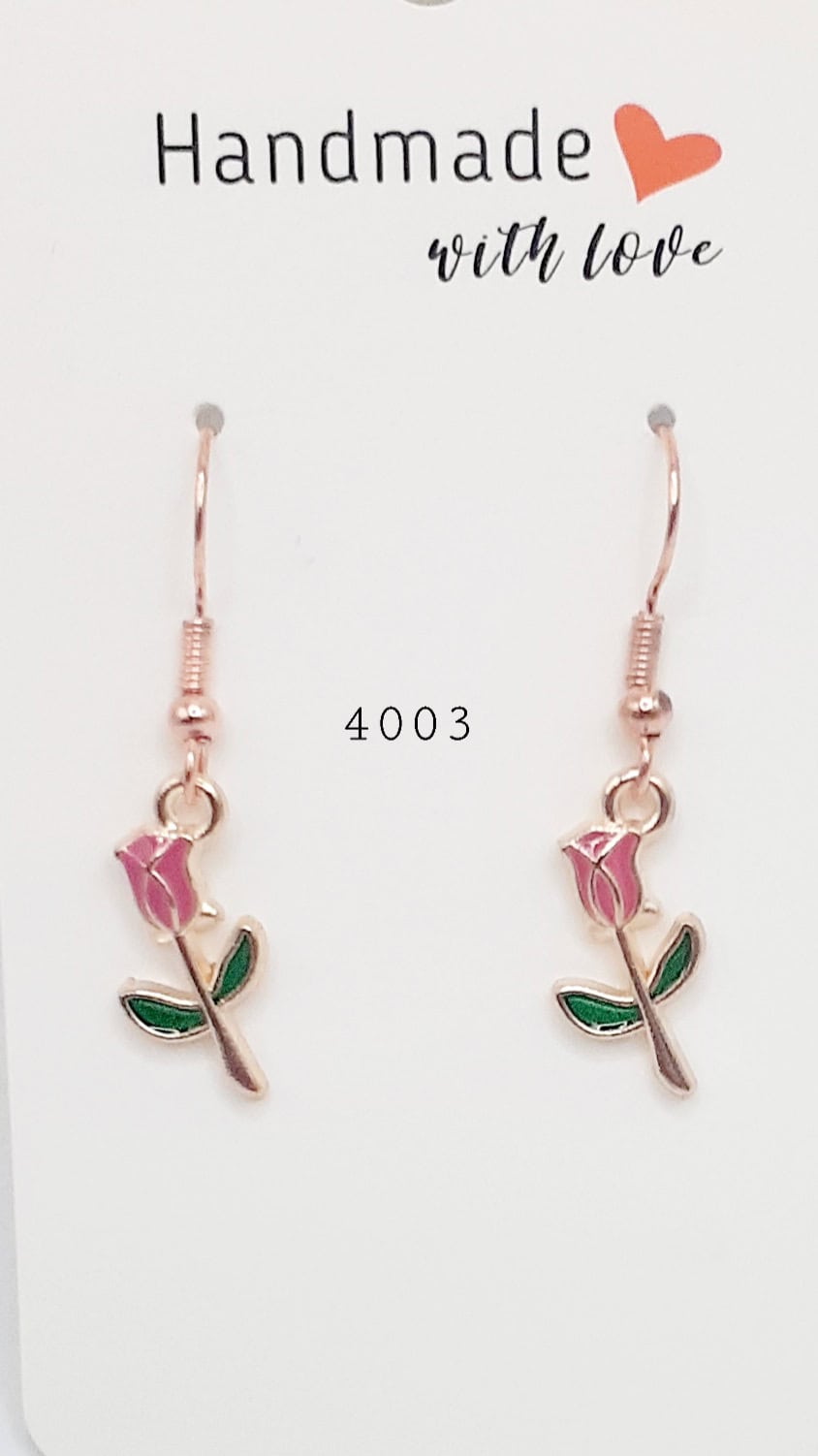 Pink Rose Stemmed Earrings