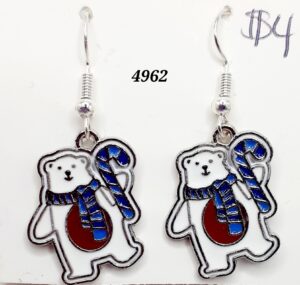 Polar Bear Blue Candy Cane Earrings