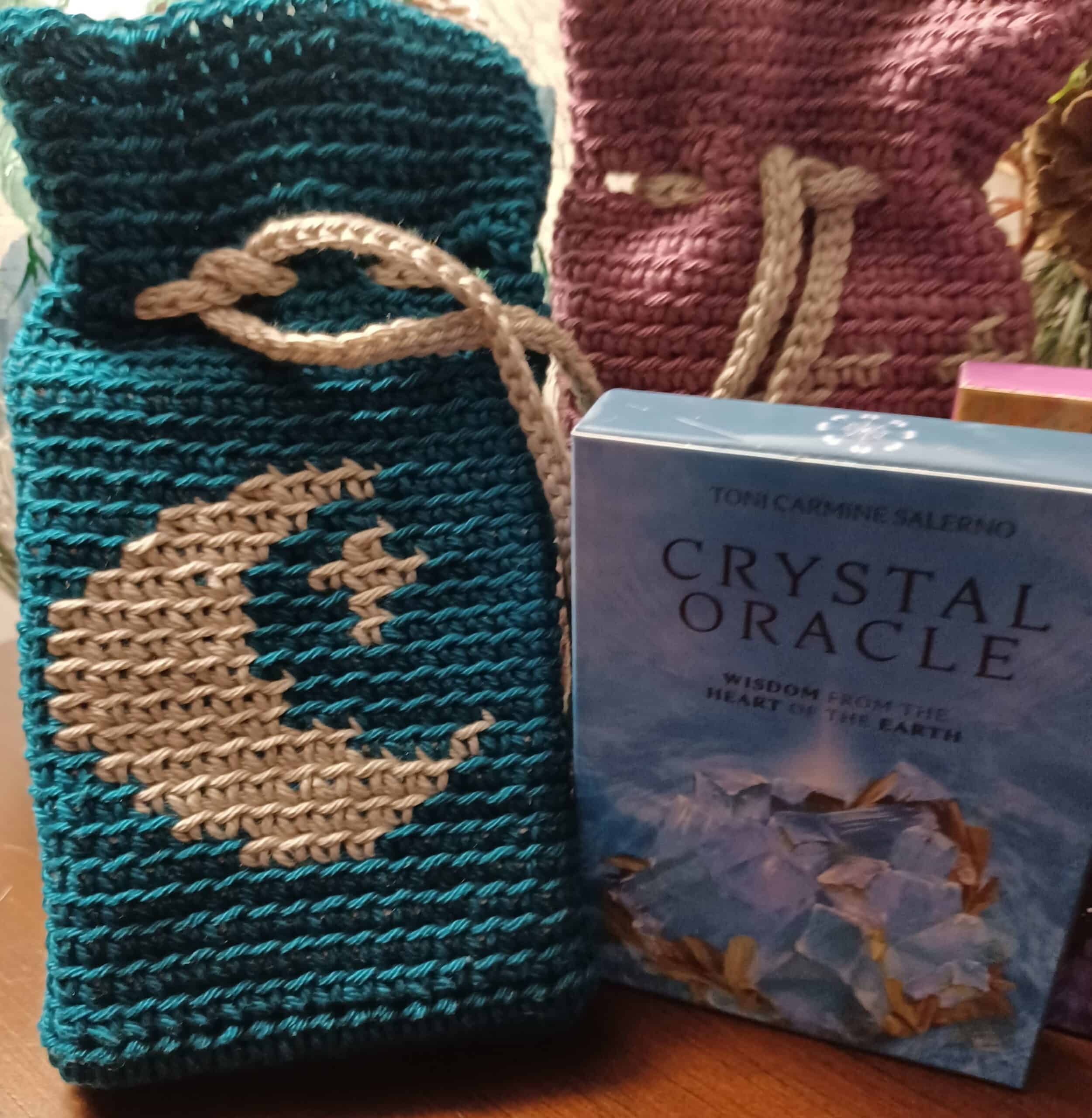 Crocheted pouch.