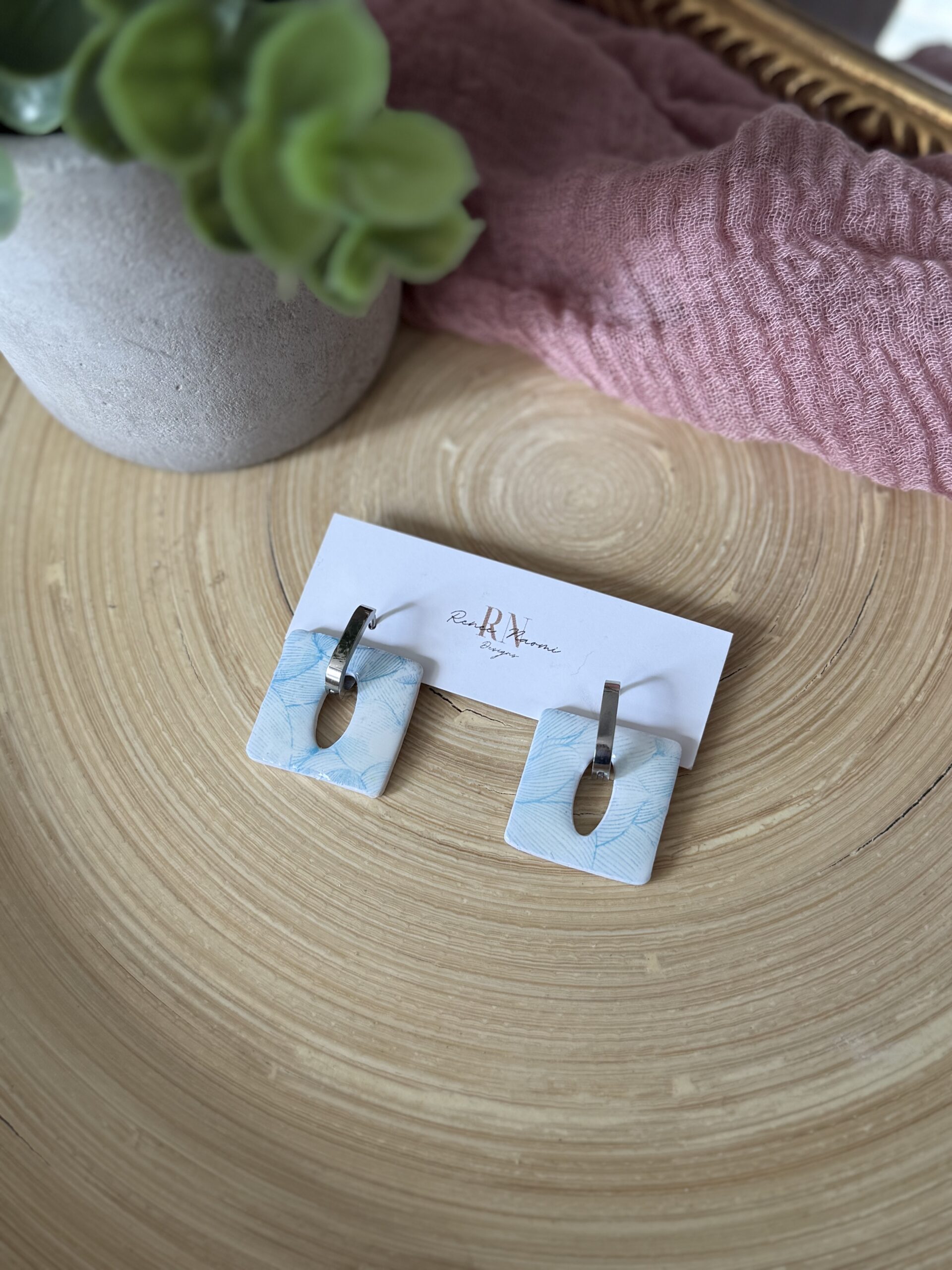 Silver huggie earrings with blue & white charms for a fun decorative way to show your style.