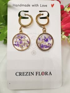Purple, white queen annes flower round hoop earrings