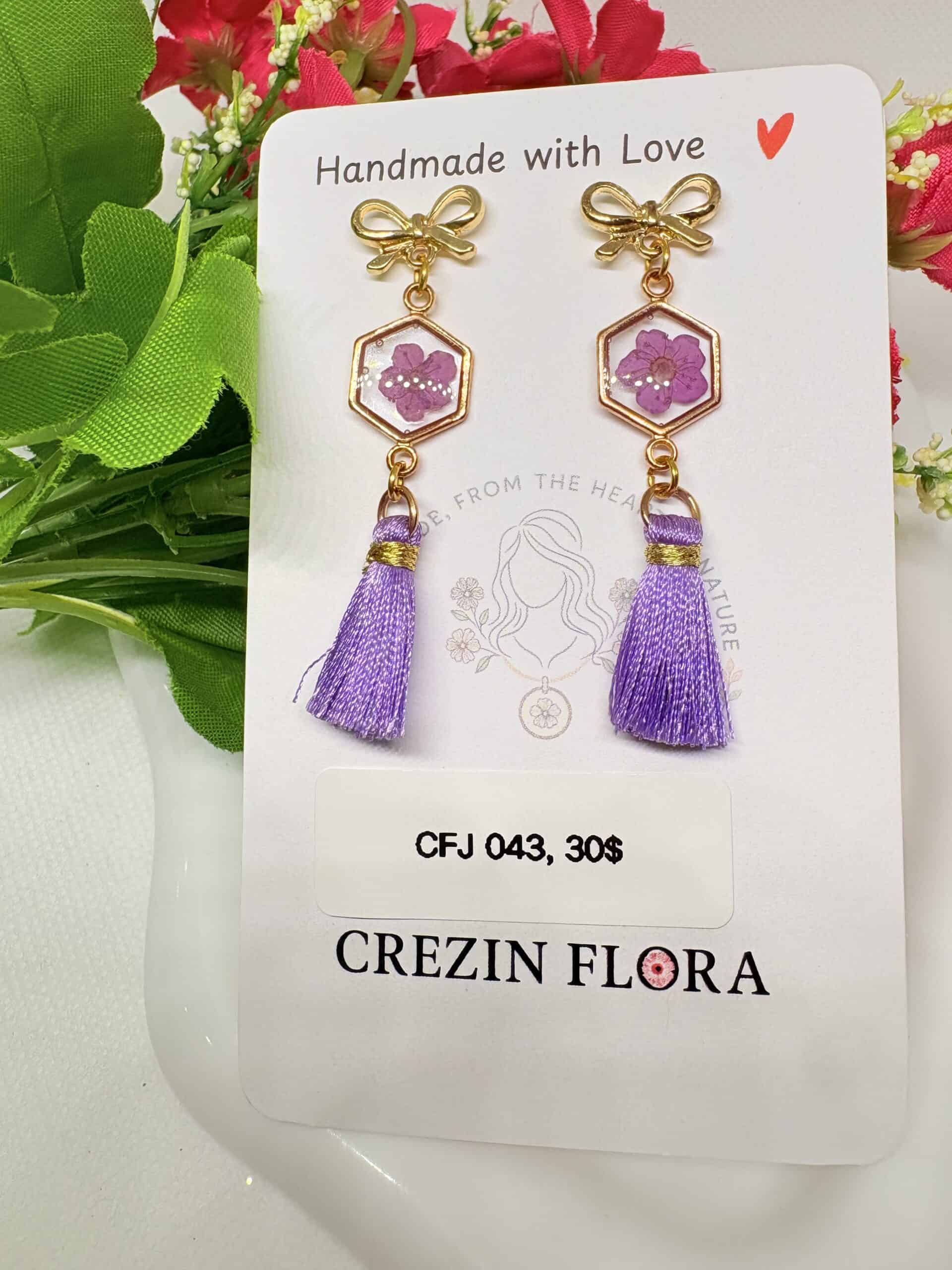 Stainless steel purples plum flower bow darla dangles earrings for daily wear