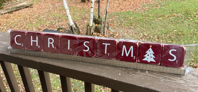 Scrabble tiles with holder – CHRISTMAS with tree ‘O’ – CRAN BG