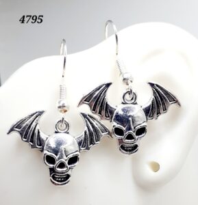 Silver Skull with Wings Earrings