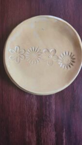 Yellow round dish with impressions