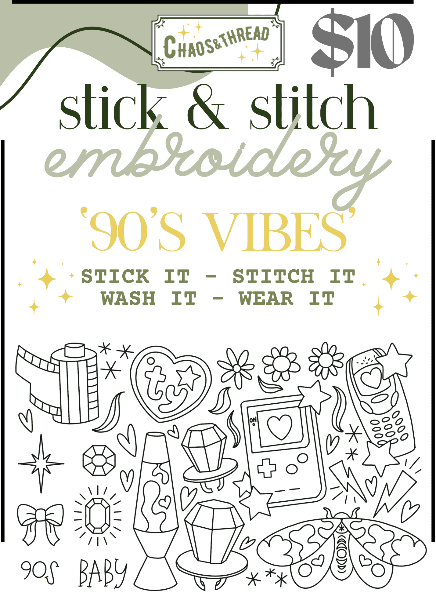 Stick and stitch fabric is a sticker like material, which you can place onto clothing/fabric, use as a guide to embroider over top of it, and then wash away with warm water.