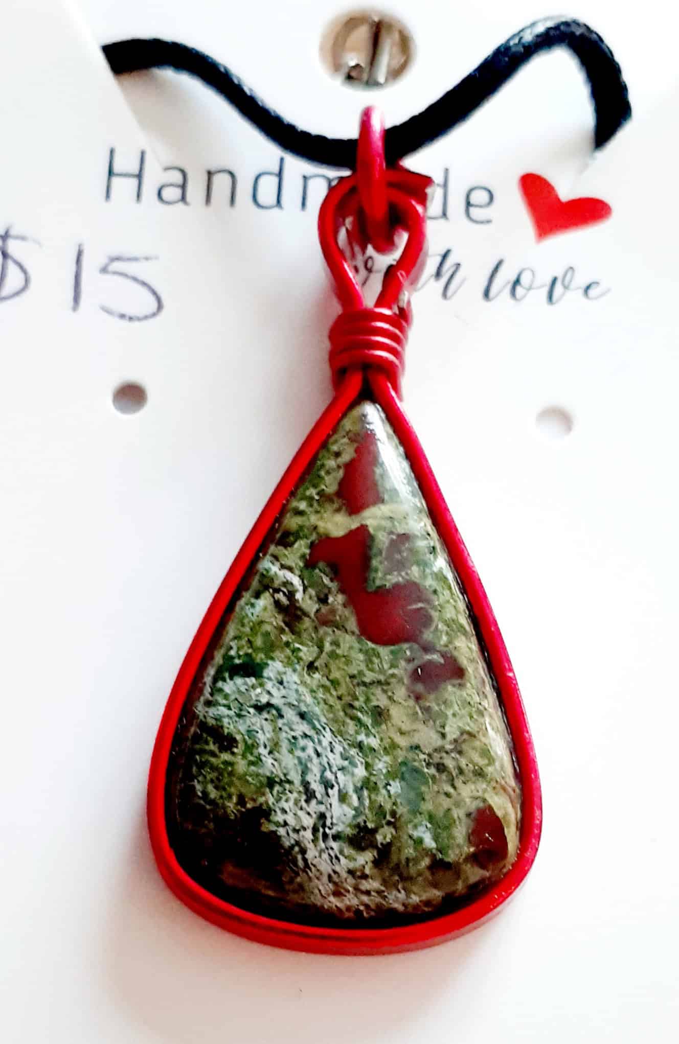 Teardrop Dragon Blood Jasper Stone Pendant.