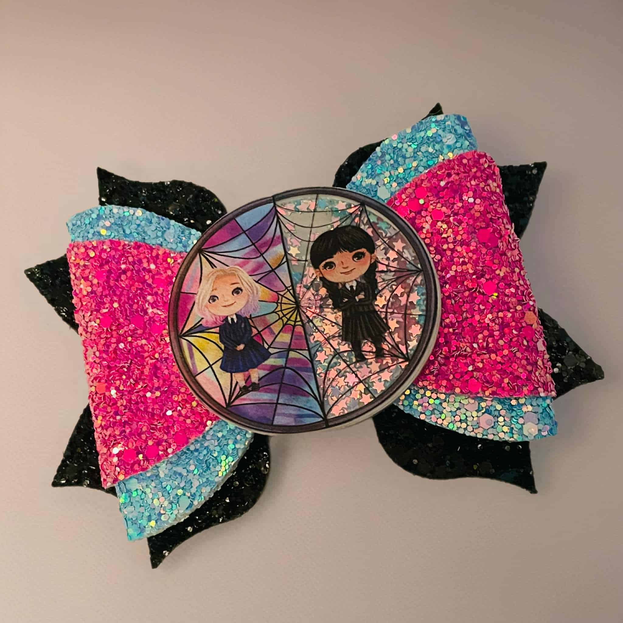 4.5 INCH WIDE FANCY HAIR BOW ON A METAL ALLIGATOR CLIP WITH A GLITTER SHAKER CENTRE