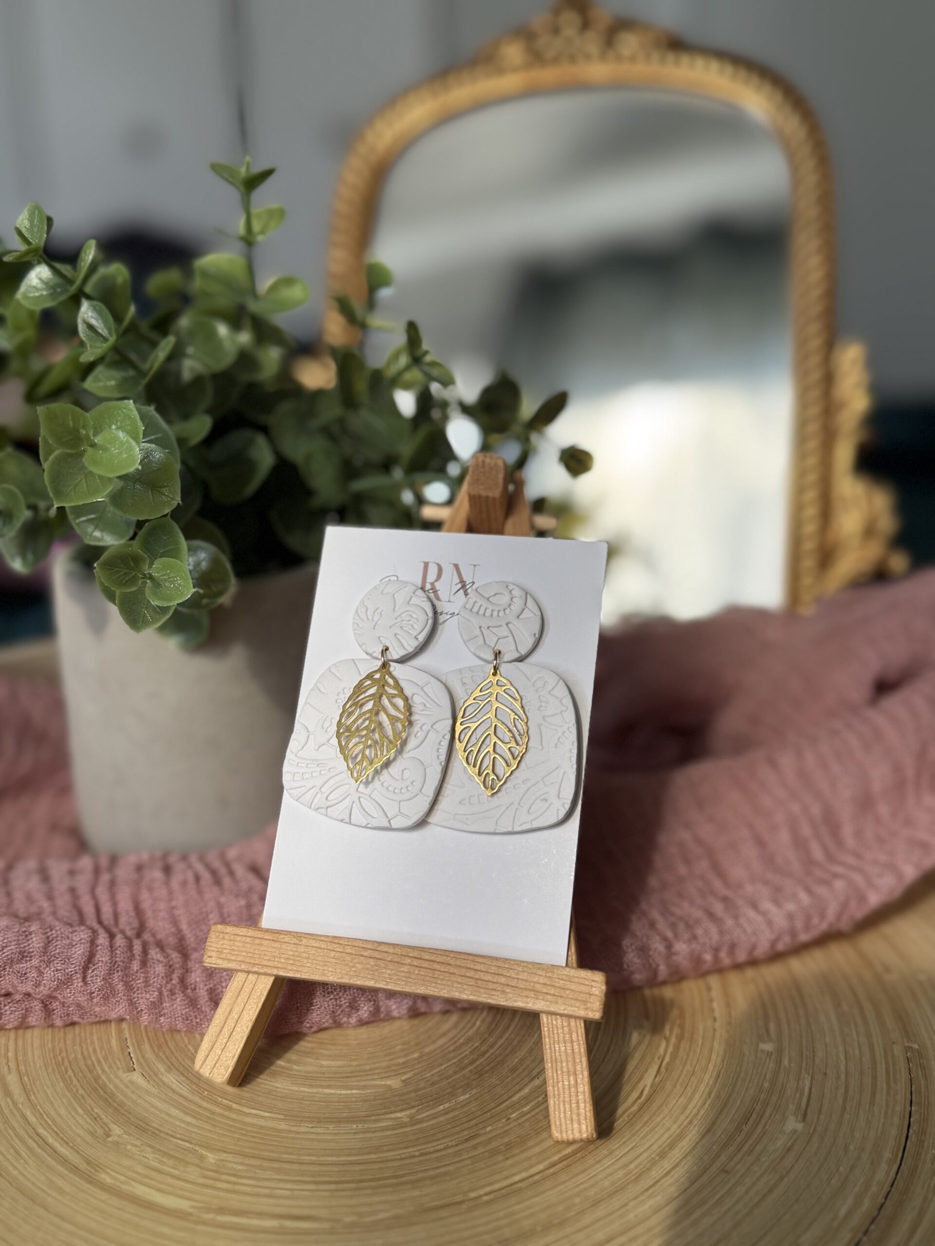 Classic white floral earrings with a gold charm earrings.