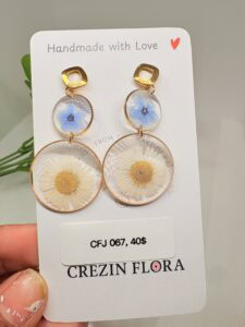 Real forget me not , white conyza flower round hoop earrings, stainless steel post