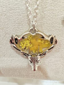 925 sterling silver plated chain, moose shaped silver coated pendant with yellow flowers